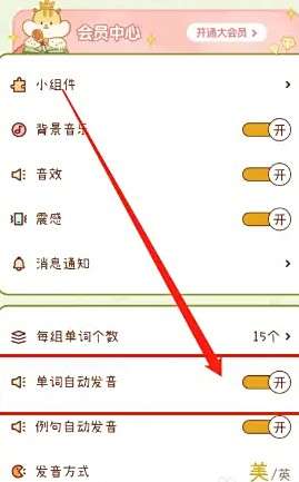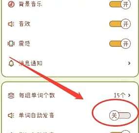 最后,如图所示,设置成关闭状态即可关闭单词自动发音了。