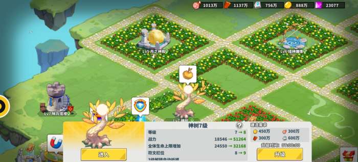 神树升级可以解锁商店购买经验符文及红色符文