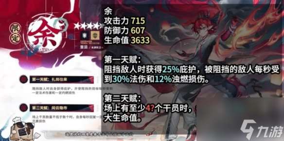 2、特点:重装类干员,具有强大的聚怪和阻挡能力,适合在重辅队中使用。