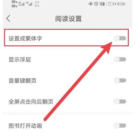 在阅读设置界面中,开启【设置成繁体字】即可,如图所示。
