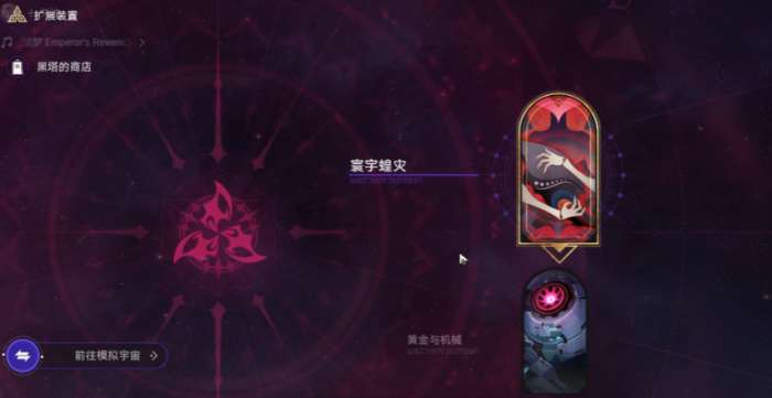 这是模拟宇宙的本体界面,一共有九个世界,每个世界的敌人和可刷取的遗器也不同,在左下方可以看到有个拓展装置,点进去之后就可以看到模拟宇宙的三个dlc,目前已有的dlc已经不会再更新,但未来可能会出新的dlc