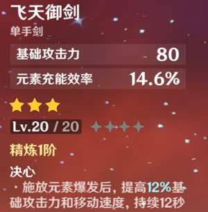 推荐选择西风剑作为四星武器。与飞天御剑相比,西风剑的元素充能效率更高,基础面板也更好。这是我推荐选择西风剑的理由,与飞天御剑相同。