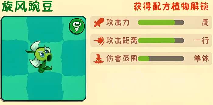 旋风豌豆是一种能够同时发射多多枚子弹的植物,这种植物本身在具有豌豆射手的优点时又植入了三叶草的特性,不过旋风豌豆虽然能连续发射多枚子弹,可是子弹的伤害却不是特别的高,对单体僵尸效果虽不是特别的明显,可若是应对群体僵尸时,变现就会变得非常亮眼。