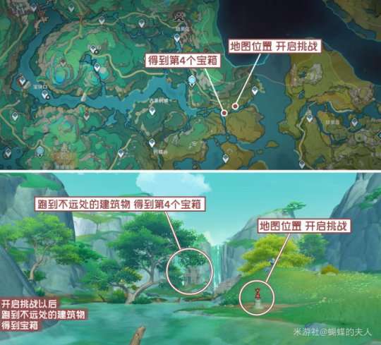 地图位置,我们开启挑战,不远处的建筑物出现宝箱。