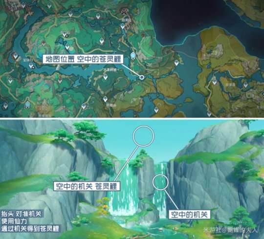 我们可以通过机关飞到上方,得到苍灵鲤。