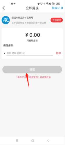 1、打开软件,点击底端的“我的”选项,点击“去提现”选项。