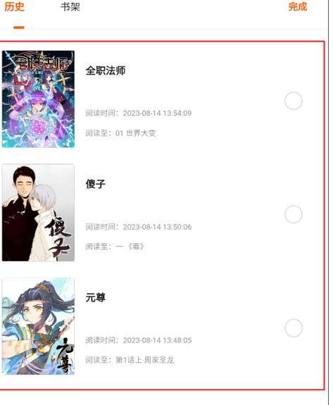 阅读过后和添加到书架上的漫画,还可以进行整理,只要点击右上角的编辑按钮。