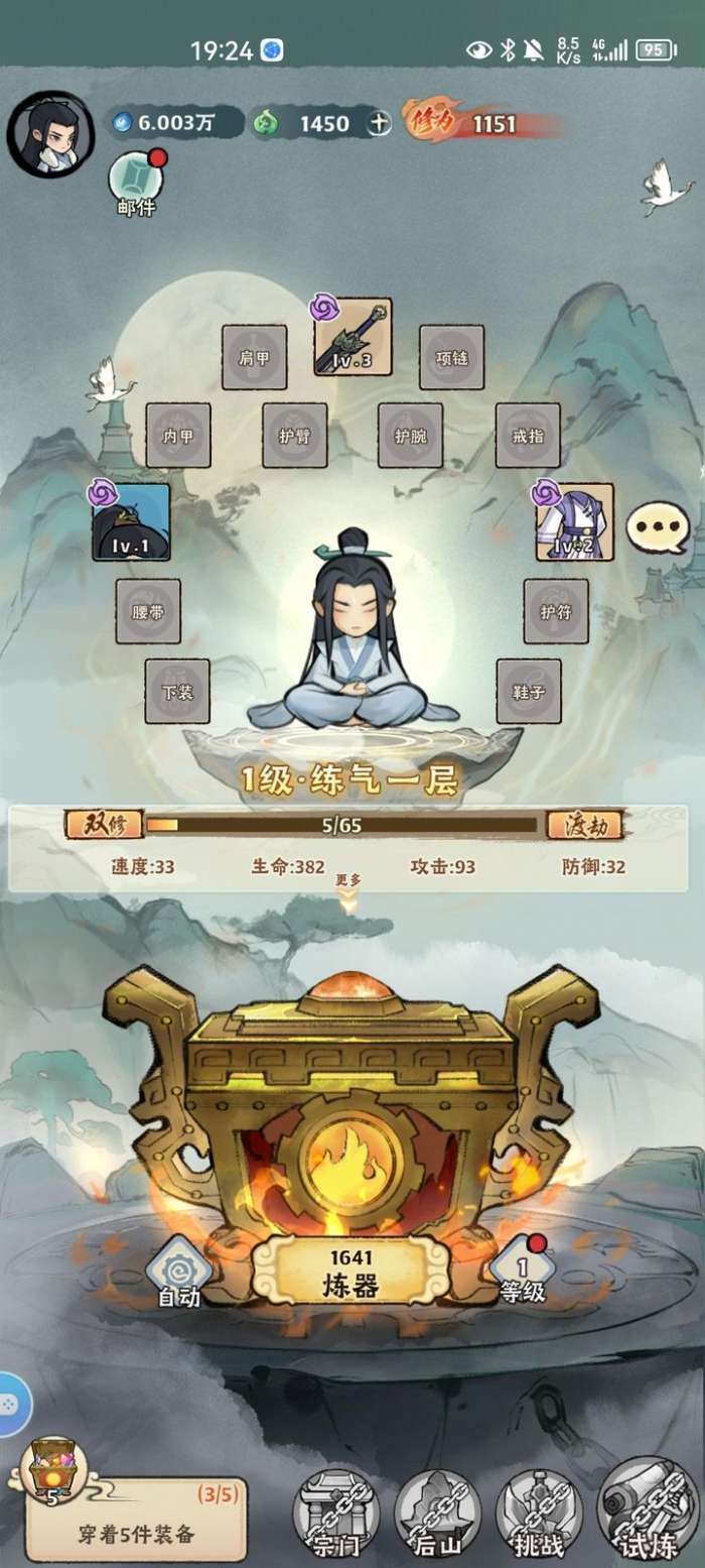 人物等级升到11级开启自动炼器,装备品质建议选择上品以上,属性前期可以连击,或者击晕,或者属性高于4项(刚开始,建议选择连击加眩晕,打试炼很好用,而且登录七天送的器灵就是击晕效果。所谓的其它流派,要有合适的器灵,灵宠,法相和仙术搭配的)