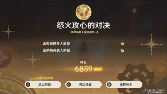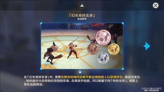 击败敌人获得评分。挑战结束后依据评分获得相应级别的奖章。