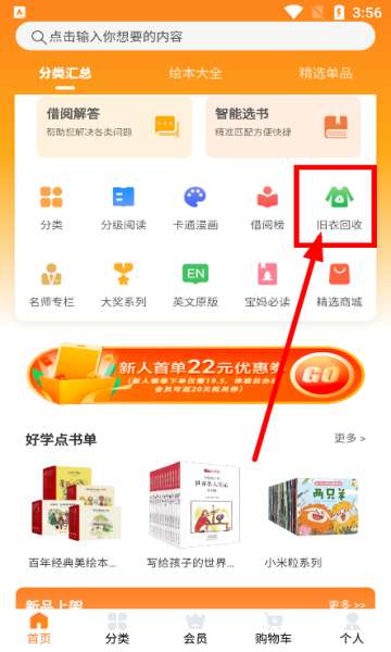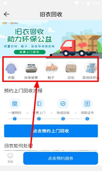 1、登陆app之后,选择【旧衣回收】