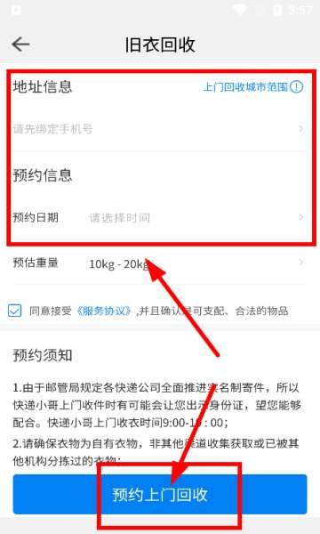 2、选择需要回收的品类,预约上门回收的时间