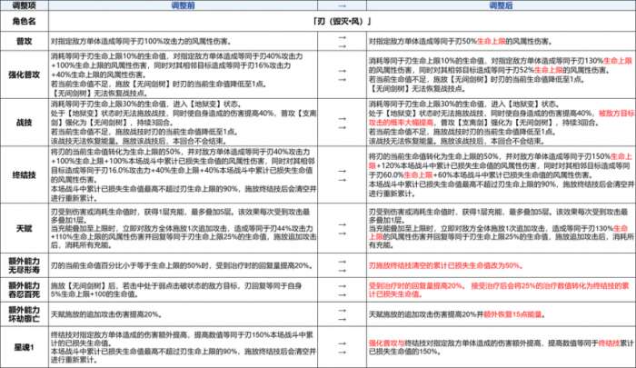 刃本体加强的提升幅度略小于镜流。0魂倍率总体提升约为20%-23%,提升主要集中在终结技伤害的爆发上,在新时代辅助的加持下,刃的表现也很不错。作为一个可以被歪到的角色,刃的数值和机制是非常优秀的。如果能歪到1魂,是完全可以当作后备方案练起来的。