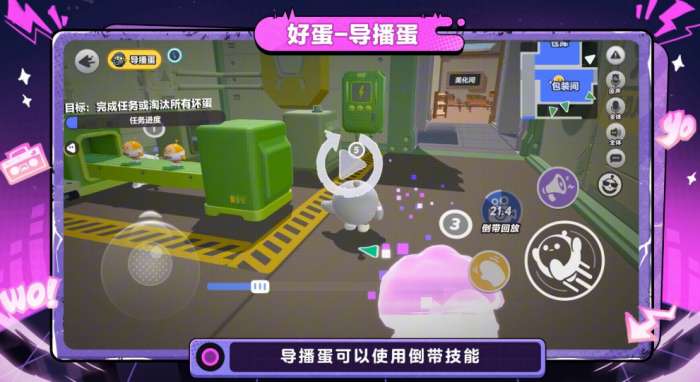 第三个是好蛋阵营的「导播蛋」。技能叫「倒带」,使用之后可以查看过去一段时间内所有蛋仔的回放残影。如果某个残影在这段时间里曾经靠近过倒地的蛋仔,那这个蛋仔的嫌疑就比较大了。这个技能相当于给好蛋阵营提供了一种回溯调查的手段,不依赖实时目击,而是靠事后复盘来找线索,在证据不足的情况下很实用。
