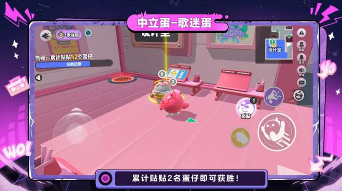 第二个是中立阵营的「歌迷蛋」,胜利条件比较特殊。会议阶段可以选一名蛋仔猜测职业,猜对的话,接下来的对局里就能持续追踪对方。猜对之后还可以对被追踪的蛋仔使用「贴贴」,累计猜对并贴贴2名蛋仔就算获胜。这个职业走的是独立路线,胜利条件和好蛋、坏蛋都不一样,玩法上需要多观察、多判断,猜职业的准确度直接影响最终能不能赢。