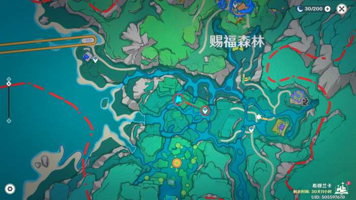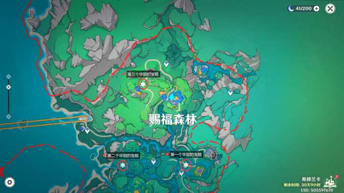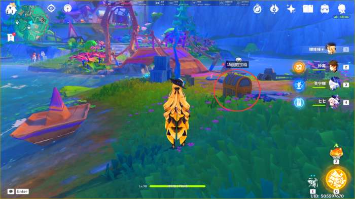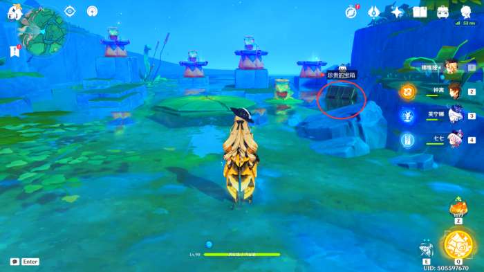 在完成任务「荷叶与森林的答案」后,即可在此处获得一个华丽的宝箱