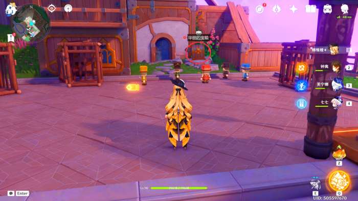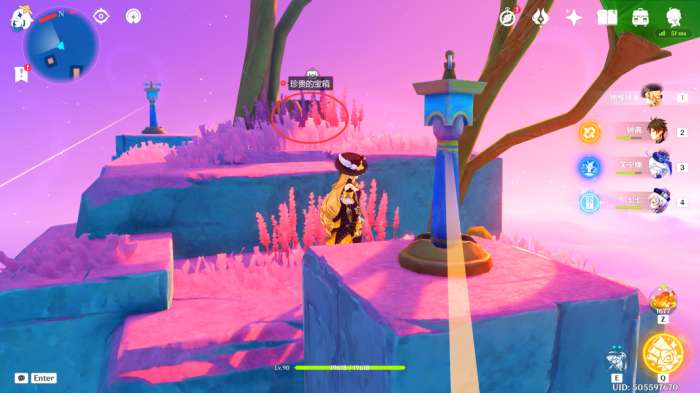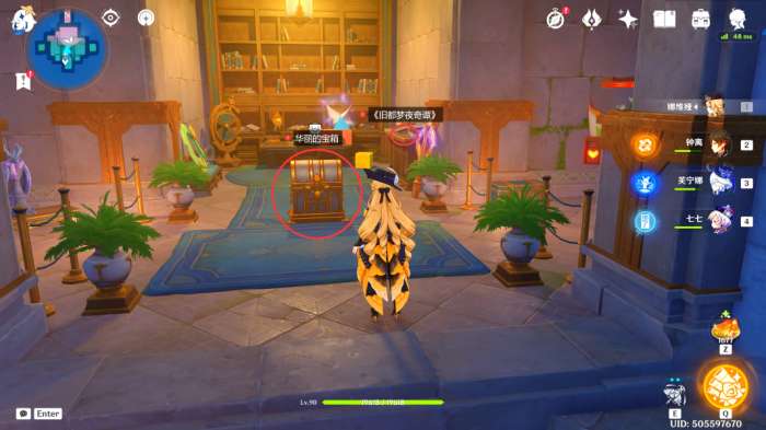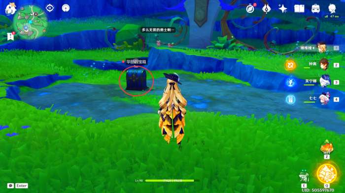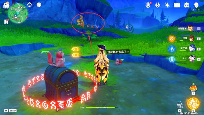 来到此处后,我们可以看到一个华丽的宝箱,靠近其周围的飞鼠触发剧情(之后会分成三个小试炼,完成之后即可解锁此处华丽的宝箱)
