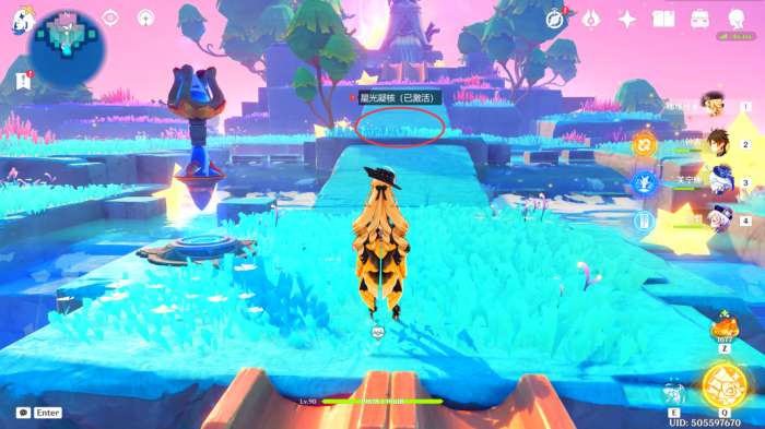 在激活此处的传送锚点时,会同时激活此处的三个「星光凝核」,这里我们分别跟随着三个「星光凝核」前往三座「女神」雕像处(建议先完成任务「向着灯塔,或是远方」后再来)