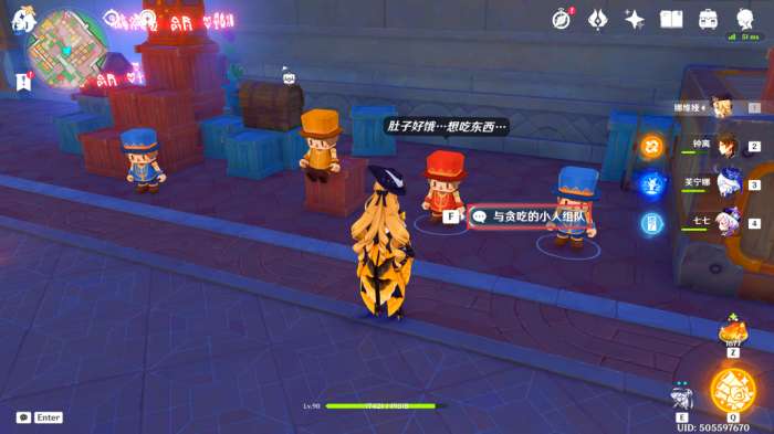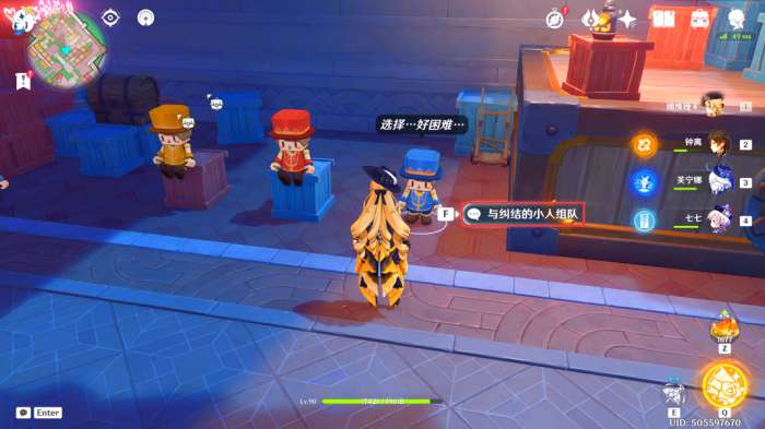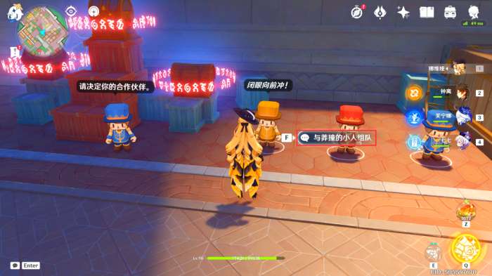 在此处可以看到一个关于积木小人的比赛,我们上前询问一下比赛的内容(简单来说,就是我们帮助右侧三个积木小人完成比赛即可)