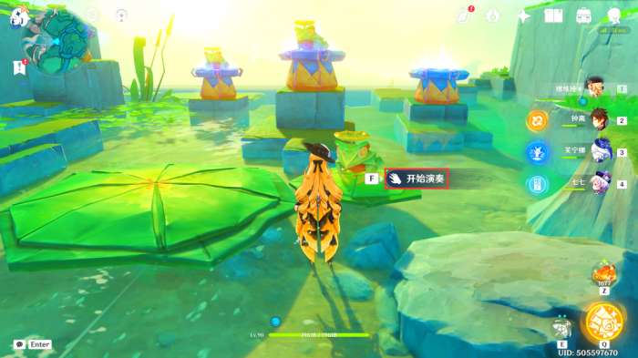 「蛙蛙大合唱」挑战激活后,我们与此处的纸蛙交互,开始演奏(演奏期间需要我们根据它们的节奏进行指挥,这里就不多叙述了)