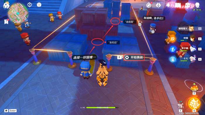选择“开始挑战”后,我们依次在前方的道路口选择“走右边”、“走前面”即可
