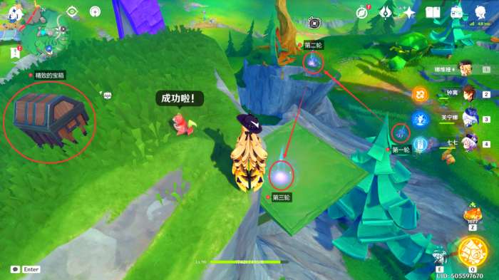 成功完成「飞鼠的空中冒险」挑战后,我们获得一个精致的宝箱(右侧为简易路线图)