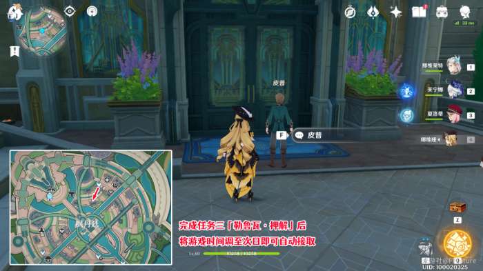 完成任务三「勒鲁瓦·押解」后,将游戏时间调整至次日,即可自动接到世界任务「勒鲁瓦·午时已至」。在勒鲁瓦家门前与皮普对话即可开始任务。