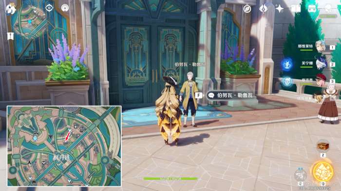 传送到枫丹冒险家协会旁边的锚点,向南沿楼梯下去,到这里的小屋前与勒鲁瓦对话。