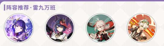 角色组成:雷电将军、九条裟罗、枫原万叶、班尼特