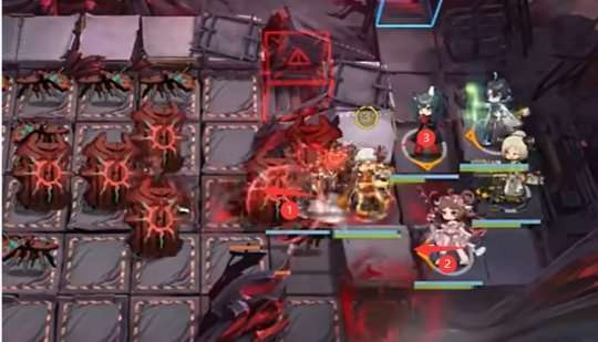 <源石污染区>会使站在这个区域上的单位持续受到真实伤害,并且技力回复速度会大幅度减慢。