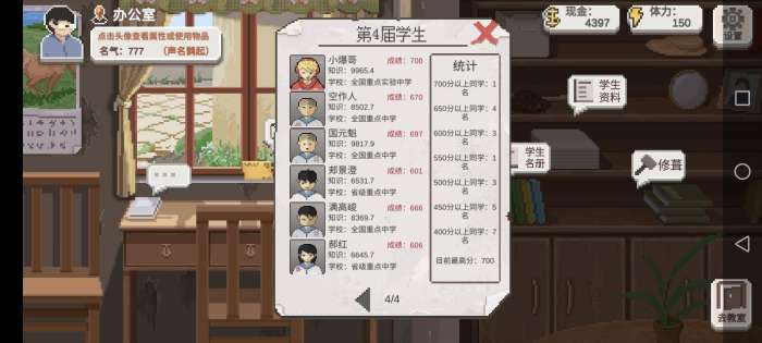 到了后期流程差不多就是教完学生就去钓鱼卖钱然后买道具,而且名声高了学生会一批比一批厉害我第五批只有一个A其他全是S了