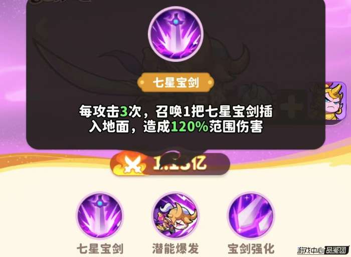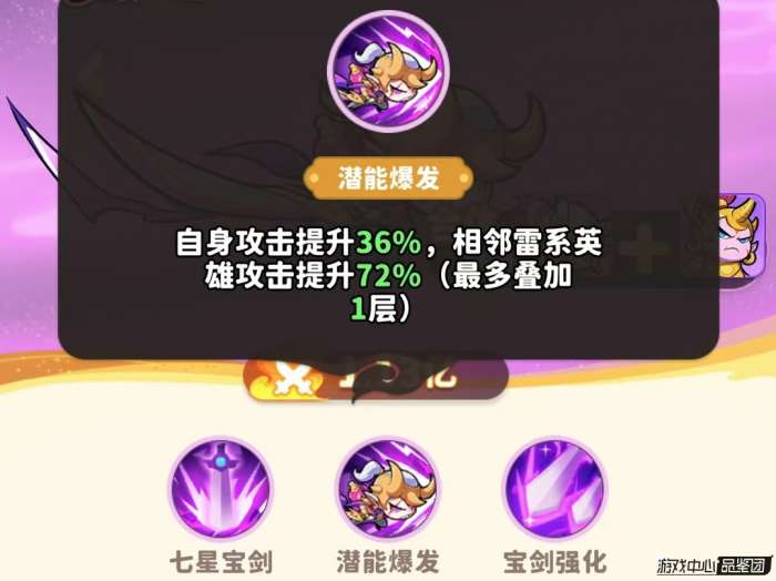 在宝剑强化的被动作用下,七星宝剑变为每次召唤2把,伤害变为150%,大幅增强了宝剑所能造成的伤害,使得剑仙清小怪速度很快。而且剑仙的潜能爆发能大幅提升自身和相邻雷系英雄的攻击力,对自身提升36%,对相邻提升72%。