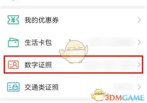 1、在爱南宁APP我的页面,点选数字证照右侧箭头;