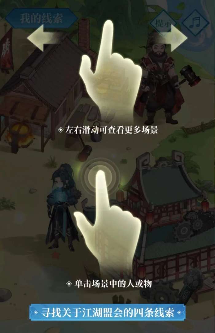 点击场景中的人或物获取线索