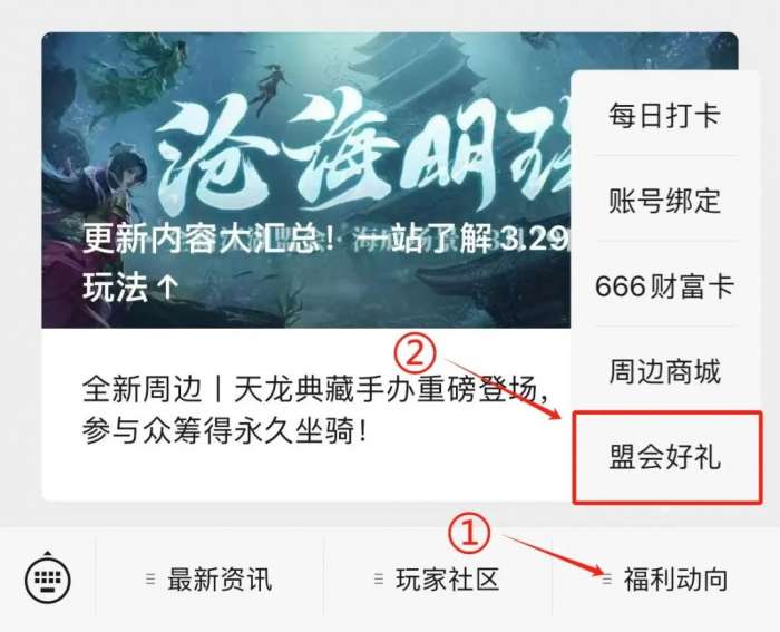 点击第三列【福利动向】-【盟会好礼】