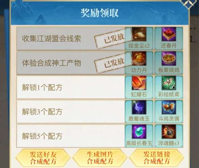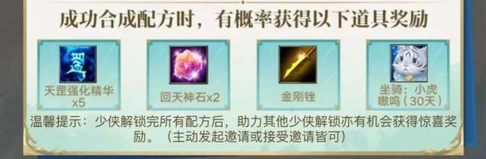 少侠和好友双方都将随机获得未解锁的配方