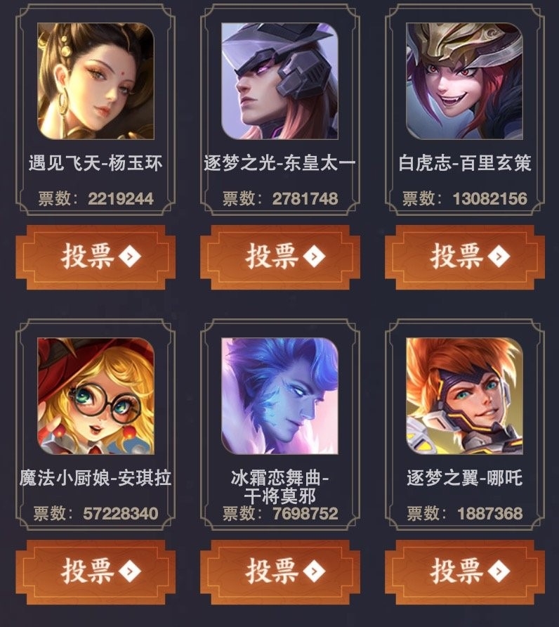 目前20款候选皮肤的基础票数都是非常高的,最低的都是百万得票级别的,但是千万得票级的就要少很多啦,目前的话只有10个。最后,能达到五千万得票级别的,目前就只有三个皮肤,它们分别是猴子的大圣娶亲,诸葛亮的武陵仙君,还有一个就是安琪拉的魔法小厨娘了。但是在13号的时候得票排名第一的还是猴子的大圣娶亲,而到14号,魔法小厨娘的得票达到了5700多万,力压搜自大圣娶亲5700多万得票数成为目前得票榜的第一名。在这九五君真的忍不住想要吐槽一下,为啥有辣么多人投猴子呢,大圣娶亲真的不知道见过多少次了,把票投给大鱼的云端筑梦师和小厨娘那不香吗?难怪有人吐槽说王者荣耀要变成猴子荣耀了。