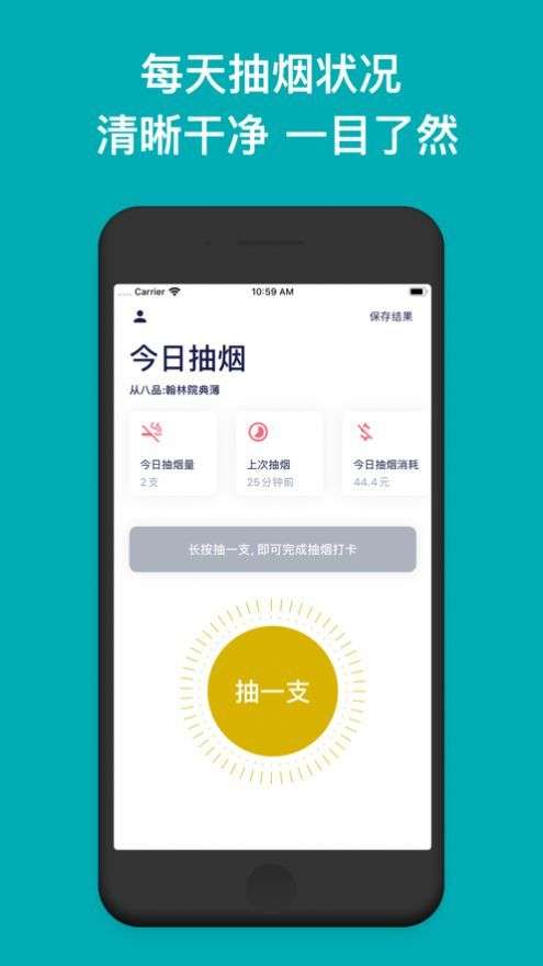很多人想戒烟但是自控能力太弱,控制不住自己对烟的执念,也有很多人深受二手烟的困扰,但是却无可奈何,今日抽烟这款软件,是一个戒烟小助手;可以帮用户严格控制自己的吸烟数量,数据以周、月、汇总的方式向你展示你抽了多少支香烟, 帮你更好的安排戒烟计划。