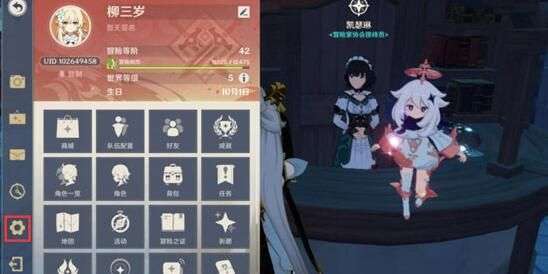 第一步:我们打开游戏界面左上角的派蒙头像,点击齿轮状图标,进入设置页面;