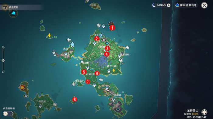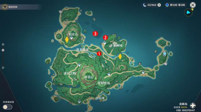稻妻地区有10个地灵龛,在大世界探索可获得29个。因为分布区域较广我们会分片讲解。图上黄色菱形为地灵龛,红色标号为大世界探索宝箱。