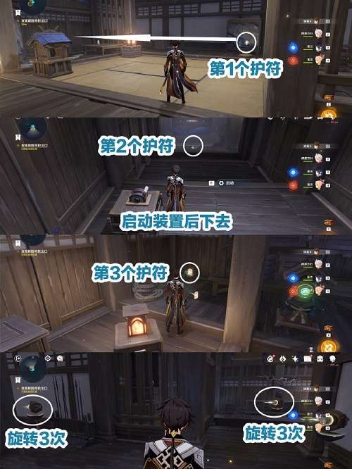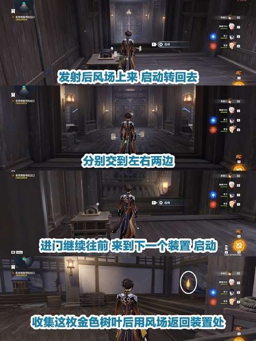 10、随后当我们解锁完所有的未知房间以后,我们再次回到庭院,拾取信物,将其一次放入正确的位置当中,我们便可以开门遇到万叶啦,途中还可以获得第八个宝箱。