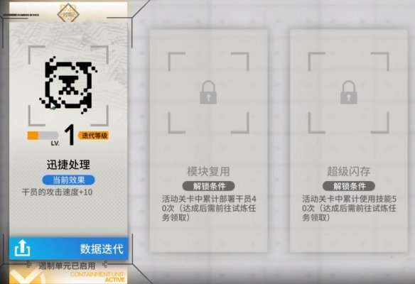 遏制单元:迅捷处理 Lv.1:干员的攻击速度+10