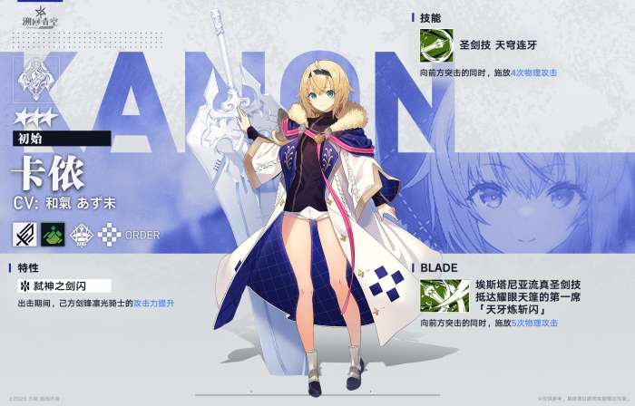 卡侬她还有一个被动的特性,就是在使用技能的期间,还可以为阵营当中的队友带来足够的攻击提升效果,当然,这里阵营是专指的剑锋凛光骑士阵营,只有这个阵营里面的队友跟她一起上阵,才可以得到这样的攻击提升增益,带来的7.5%攻击增益虽然不高,但是毕竟是一个全体队友都有的增益,所以阵营效果上面得到提升还是可以利用起来的,所以在卡农的定位上面大家要注意,如果把她放在主动爆发手的位置上面,后期在大招上面就一定要先进行提升,这样带来团队增益的效果会更强一些,如果是把她放在辅助输出的位置上面的话,主动技能就要进行先手释放,相对起来会比其他的技能好用。