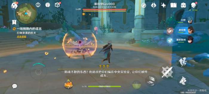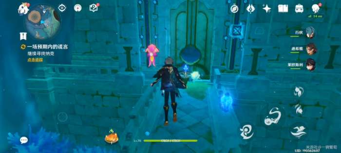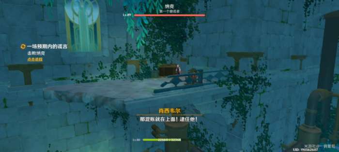 完成上个任务,会自动接取。我们去找纳克,这里的水下机关得多试。用章鱼的能力长按弹性阀,使这晶块卡在基座上(框中)。