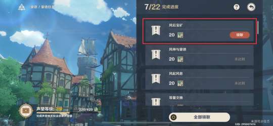 三处水晶矿探索完后,返回蒙德城提交水晶矿