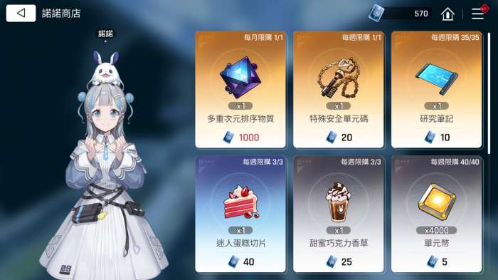在卡厄思梦境的游戏世界中,诺诺商店是玩家脱离新手期后才会解锁的一个十分重要的功能。在诺诺商店中,玩家可以兑换到特定的游戏资源,这些物资不仅会影响到后续的关卡进度,还会影响到系统功能的深度解锁和角色培养等,十分重要。比如研究笔记这一物品可以在研究设施中提供科技树的加成,从而解锁更多的基础加成和更好的奖励升级。而政策报告书可以在政策试中进行新的意见添加并提升执行效率,帮助玩家更快的获得资源。此外,诺诺商店中还拥有能够解锁角色事件的特殊单位安全码和可以锁定记忆碎片主要词条的多重次元排序物质等,对角色的养成和提升拥有巨大的作用,也特别值得换取。