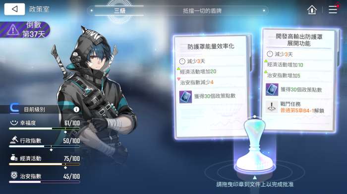 政策的选择会减少灾难的倒计时,因此大家要在时间结束之前达到相应的目标,所以这十分考验对每个指数获得预期的把握。通常情况下,大家选择能够提升三项指数的政策就足矣,但有时会有一些较为特殊的政策,可以解锁战斗任务关卡或者是获得研究笔记,这时就比较推荐大家优先选择它。值得注意的是,诺诺商店的兑换是限量且有时效限制的,有些物资的更新周期是一个月,而有些物资则是一周。每次更新所能刷新出来的物资也会有着一些区别,因此建议玩家们在囤积了一定的政策点数之后再去进行兑换,以免错失了自己想要的材料。此外,诺诺商店中还有着能够增加角色好感度的礼物,玩家们也可以根据自己的需求来酌情换取哟。
