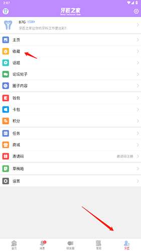 1、打开软件,点击【牙匠】选项,然后点击【收藏】选项。