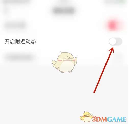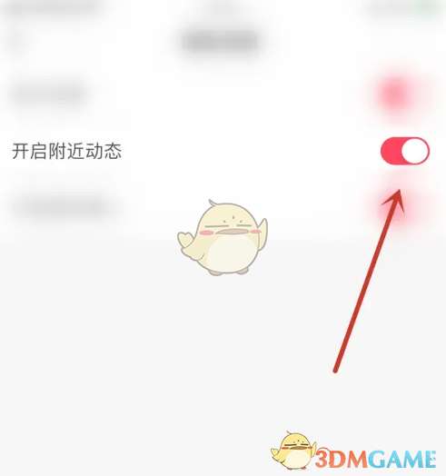 4、“开启附近动态”后面的圆点变为红色即表示启用Yo交友开启附近动态成功