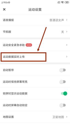这里我们可以选择切换到GPS微星地图,让我们能对周围环境有更好的观察,当然我们也可以点击这个运动数据实时上传。