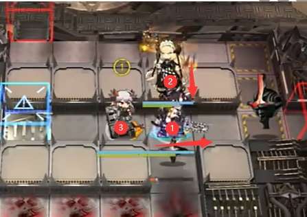 如图所示部署【①煌】向右,【②夜莺】向下,【③塞雷娅】,随后挂机即可。